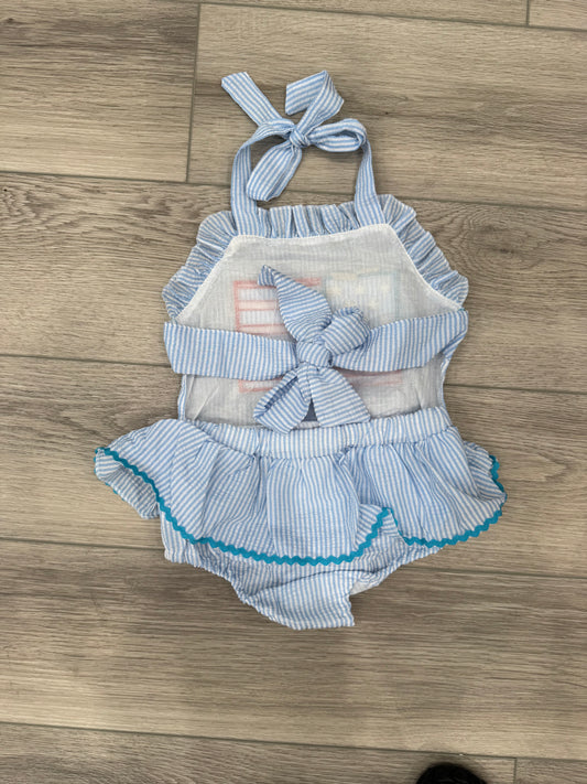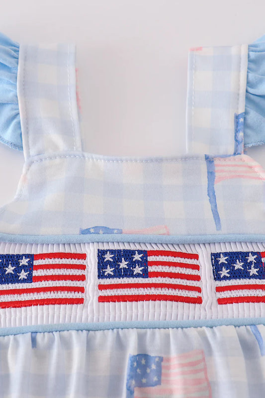 blue flag embroidery dress