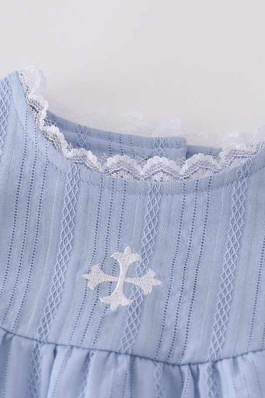 blue cross embroidery dress