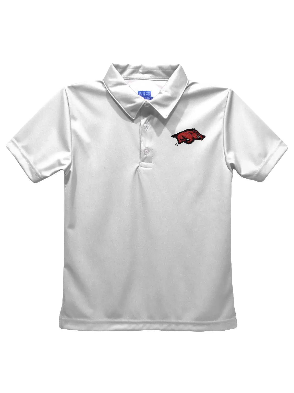 arkansas razorback white logo polo